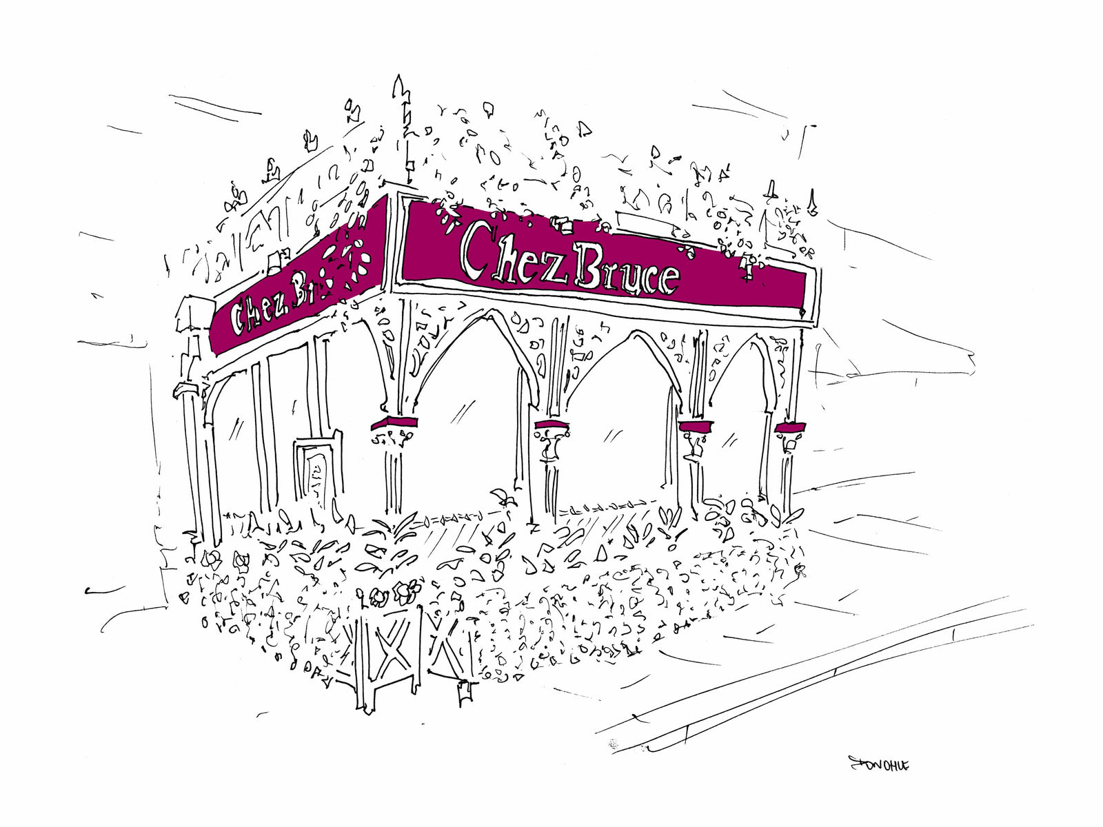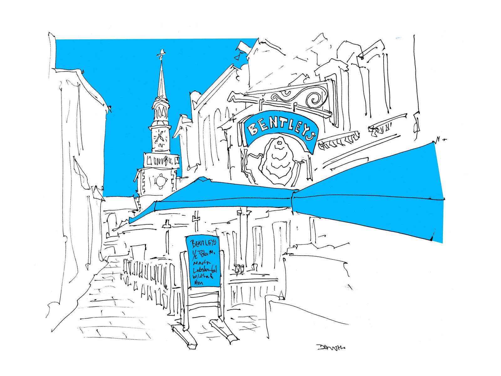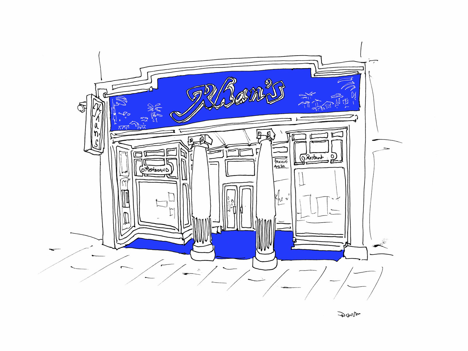 In the summer of 2018, I made two trips to London to draw its booming, pre-Covid, pre-Brexit restaurant scene. From Soho to Brixton and Hammersmith to Whitehall, I crisscrossed the city, sketching queues of diners, shiny new facades, and esteemed establishments. I'll be adding more prints here shortly, but if there's a place you might want now, drop me a line. I'll see if I've inked it in. I have 150 or so in the offing, so there's a good chance I have.