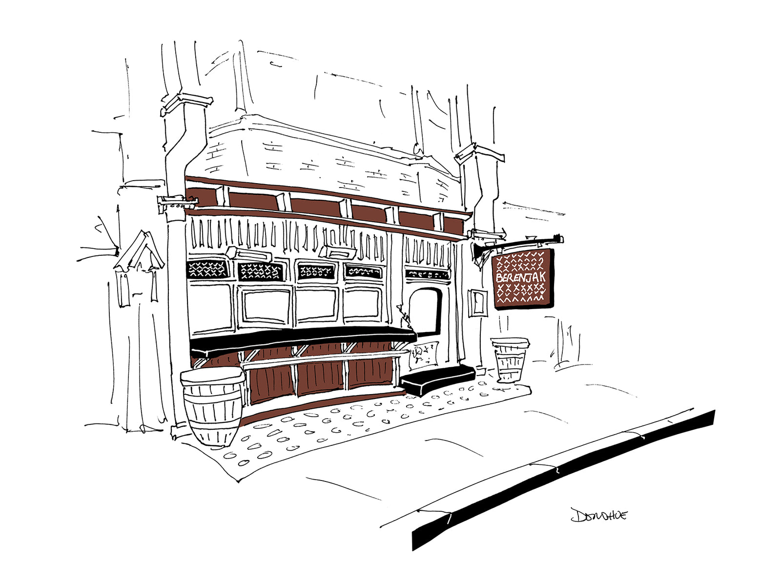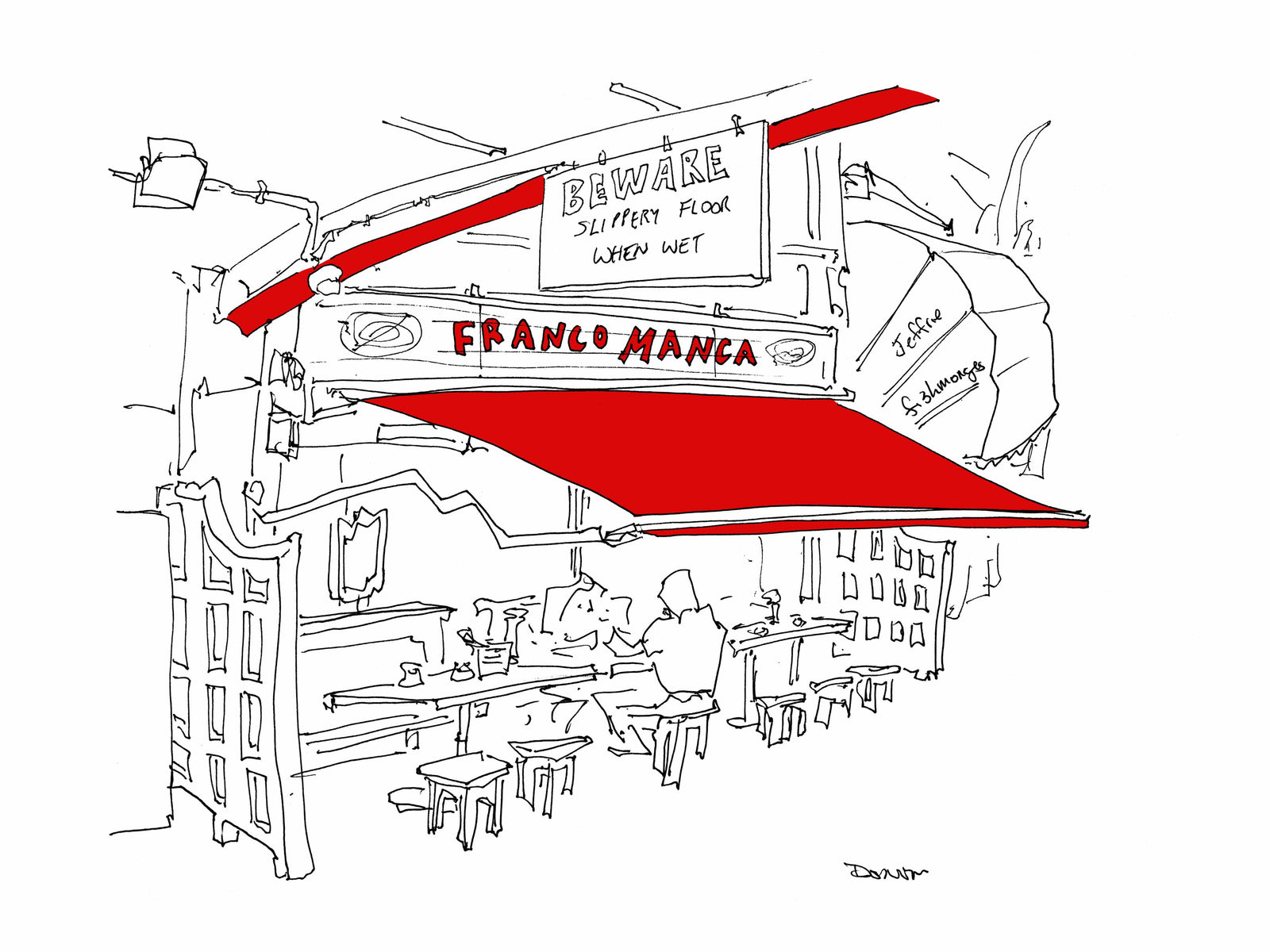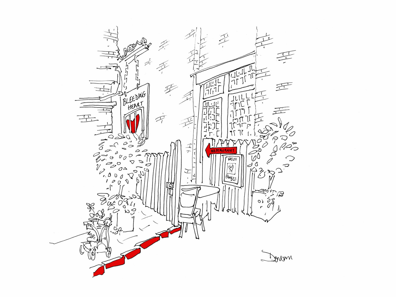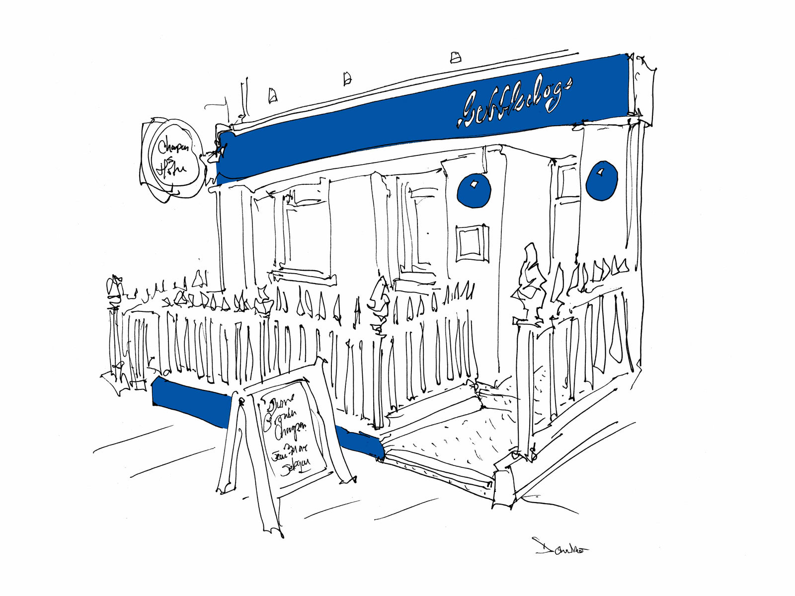 In the summer of 2018, I made two trips to London to draw its booming, pre-Covid, pre-Brexit restaurant scene. From Soho to Brixton and Hammersmith to Whitehall, I crisscrossed the city, sketching queues of diners, shiny new facades, and esteemed establishments. I'll be adding more prints here shortly, but if there's a place you might want now, drop me a line. I'll see if I've inked it in. I have 150 or so in the offing, so there's a good chance I have.