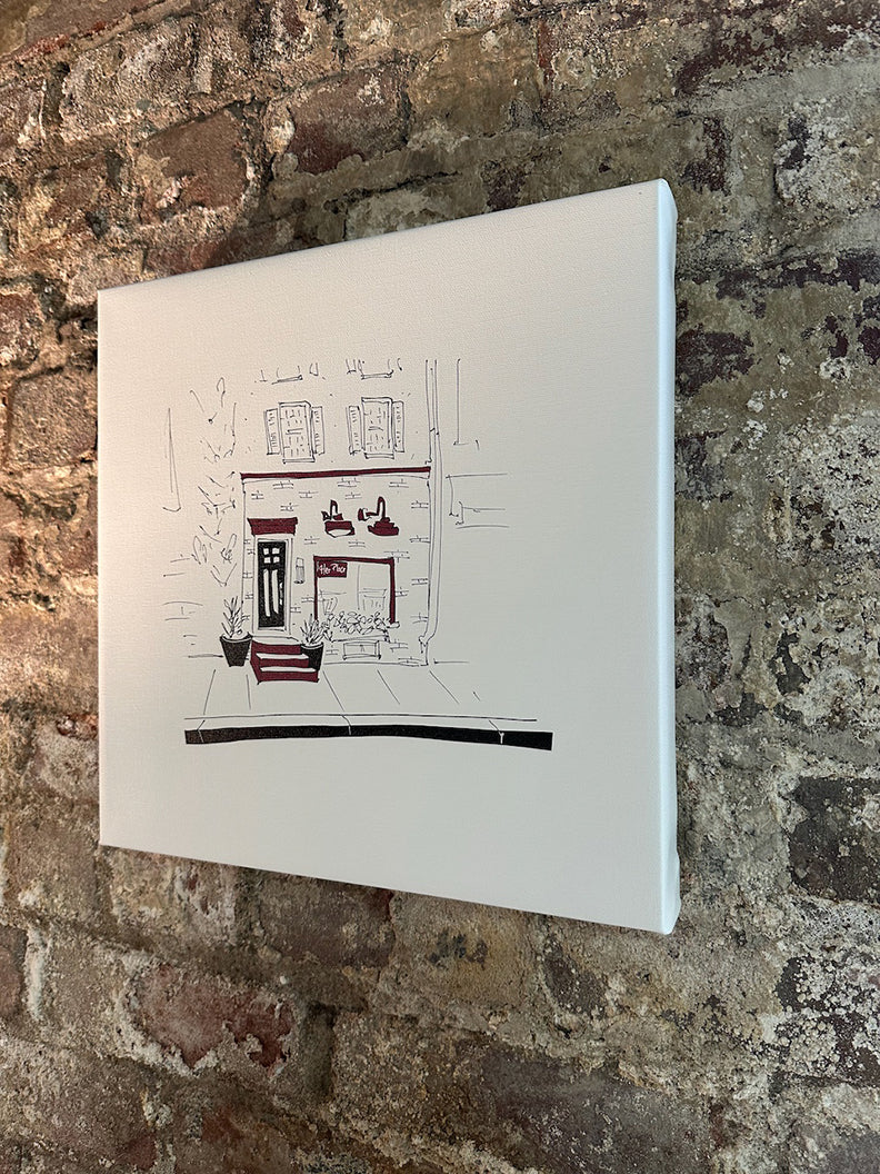 When I draw a restaurant, I do it in one sitting, usually on-site, with a pen and no eraser. It’s an old-fashioned process in a world that moves fast, and that’s part of why I think people connect with the work. It’s tactile and emotional. Not perfect, but real. Whether it’s the refined exterior of Vetri Cucina or the bright buzz of Her Place Supper Club, these prints reflect how places feel.
